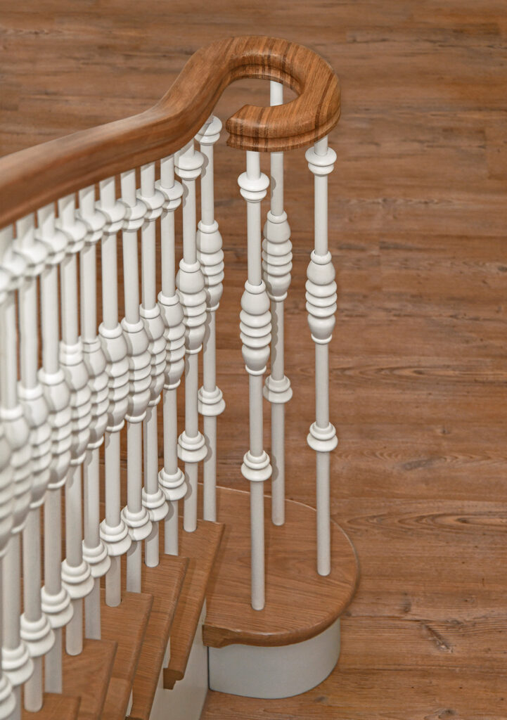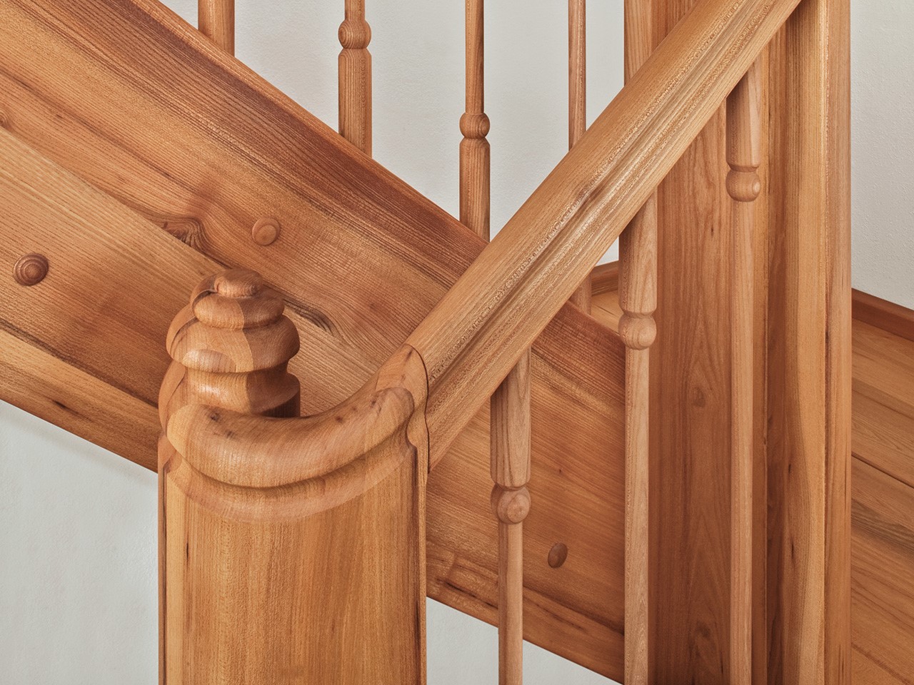 Neben dem Schnitzen spielt auch das Drechseln eine wichtige Rolle bei der Gestaltung von Treppenpfosten. Diese Technik ermöglicht es, symmetrische und runde Formen zu schaffen, die oft für klassische und elegante Designs verwendet werden. Das Drechseln erfordert Präzision und Erfahrung, um die gewünschten Formen und Muster zu erzielen. Drechselarbeiten sind besonders beliebt für gedrehte Pfosten und Baluster, die durch ihre gleichmäßige Form und die feinen Details bestechen. Baluster sind die vertikalen Stäbe oder Säulen, die das Geländer einer Treppe stützen. Sie sind sowohl ein ästhetisches als auch ein strukturelles Element. Baluster können in verschiedenen Designs und Materialien gestaltet werden, von schlicht und modern bis hin zu aufwendig verziert und klassisch.