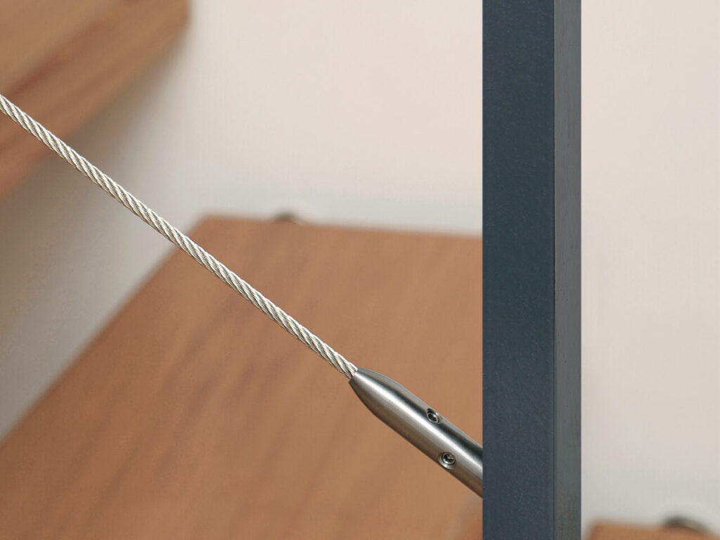 Beispiel aus unserer Manufaktur: Eine innovative Lösung haben wir in einem modernen Wohnhaus umgesetzt, bei dem die Treppenpfosten mit Drahtaufhängungen versehen sind. Diese filigranen Drahtseile sorgen nicht nur für Funktionalität und Stabilität, sondern auch für eine moderne und luftige Optik.