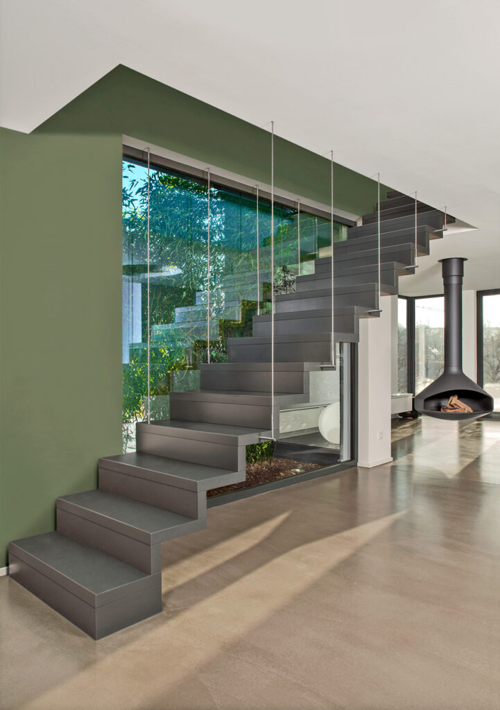 Leichte Treppen zeichnen sich durch filigrane Strukturen oder Materialien aus. Oft werden sie mit minimalistischen Treppengeländern kombiniert, sodass es den Eindruck erweckt, als würden sie schweben. Kombiniert mit Elementen aus Glas, eignen Sie sich hervorragend für moderne, offene Raumkonzepte.