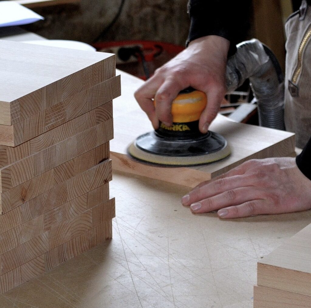 Jede Stufe wird von Hand geschliffen und erhält die gewünschte Oberflächenbehandlung. So wird nicht nur die Optik perfektioniert, sondern auch die Langlebigkeit der Treppe sichergestellt.