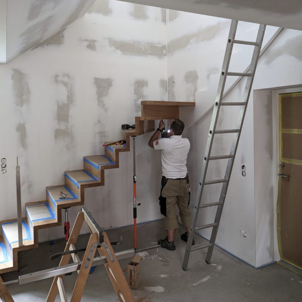 Gerne zeige ich Ihnen, wie eine maßgeschneiderte Treppe bei uns entsteht – Ein Blick hinter die Kulissen zeigt den aufwendigen Entstehungsprozess und damit die Qualität unserer Arbeit: