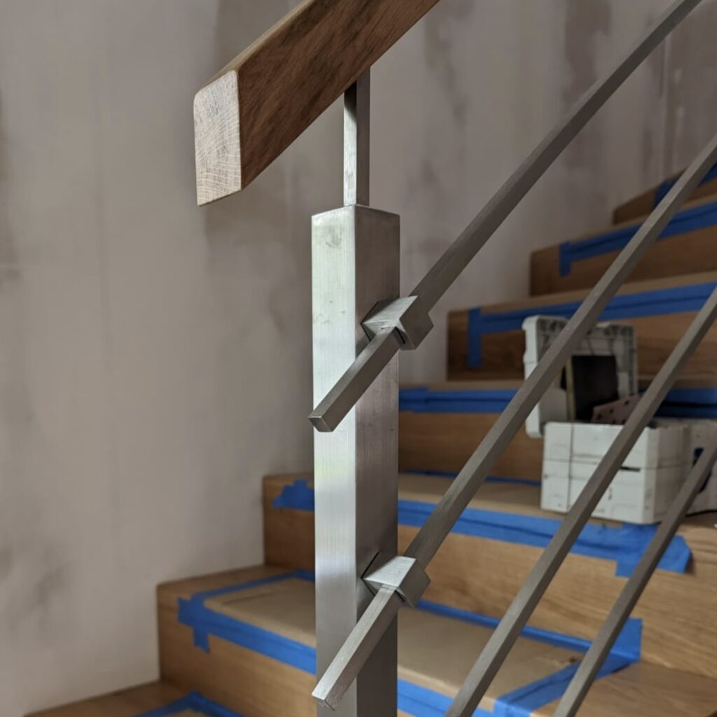 Nach der Fertigstellung wird die Treppe sorgfältig verpackt und zur Baustelle transportiert. Dort erfolgt die fachgerechte Montage durch unsere erfahrenen Monteure. Jeder Handgriff sitzt, damit die Treppe sicher und stabil eingebaut wird. Sobald alle Elemente montiert sind, erfolgt die finale Kontrolle – erst dann ist das Werk vollendet.