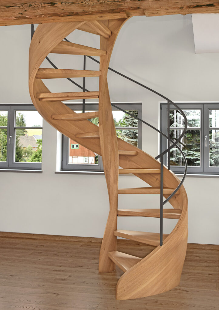 Wendeltreppen sind eine beliebte Wahl für größere, offene Räume. Ihre elegante, spiralförmige Struktur schafft Bewegung und Dynamik im Raum, während ihre Bauweise gleichzeitig eine Leichtigkeit vermittelt.