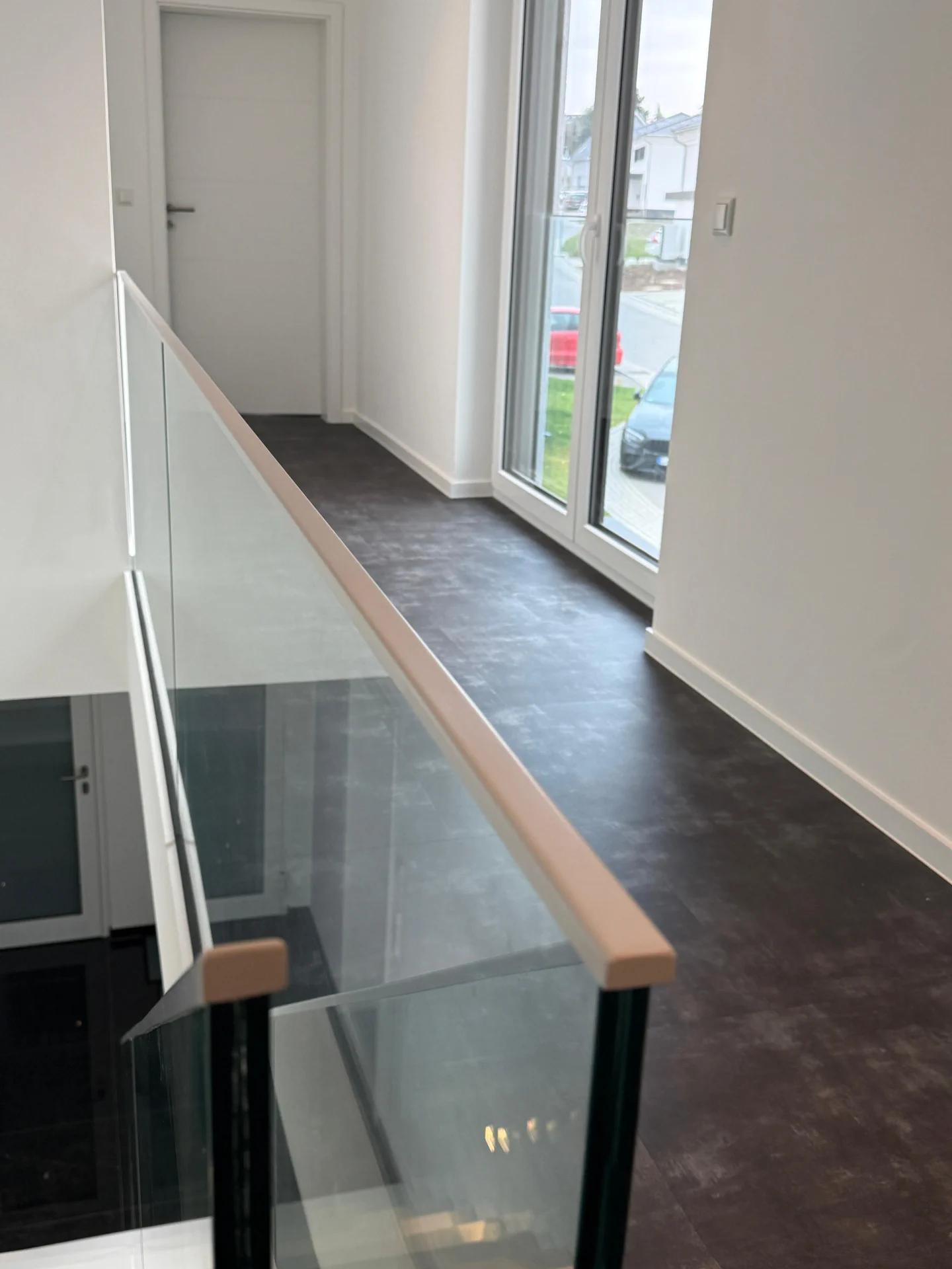 Diese Designtreppe wurde als leichte, architektonisch prägende Stauraumtreppe für ein modern gestaltetes Wohnhaus entwickelt. Da kein Keller zur Verfügung stand, lag ein zentraler Schwerpunkt der Planung auf der Integration großzügiger Stauraumlösungen direkt unter dem Treppenlauf. Die beschichtete Corian-Oberfläche verleiht der Treppe eine ruhige, zeitgemäße Anmutung und unterstreicht den puristischen Charakter des Innenraums. Gleichzeitig ermöglicht das Material präzise Kanten, fugenarme Übergänge und eine besonders homogene Optik. Die unter der Treppe integrierte Garderobe fügt sich funktional und gestalterisch in das Gesamtkonzept ein und nutzt den vorhandenen Raum effizient aus. Durch die reduzierte Konstruktion wirkt die Treppe trotz ihrer Funktionalität leicht und offen und unterstützt die klare Linienführung der modernen Hausgestaltung.