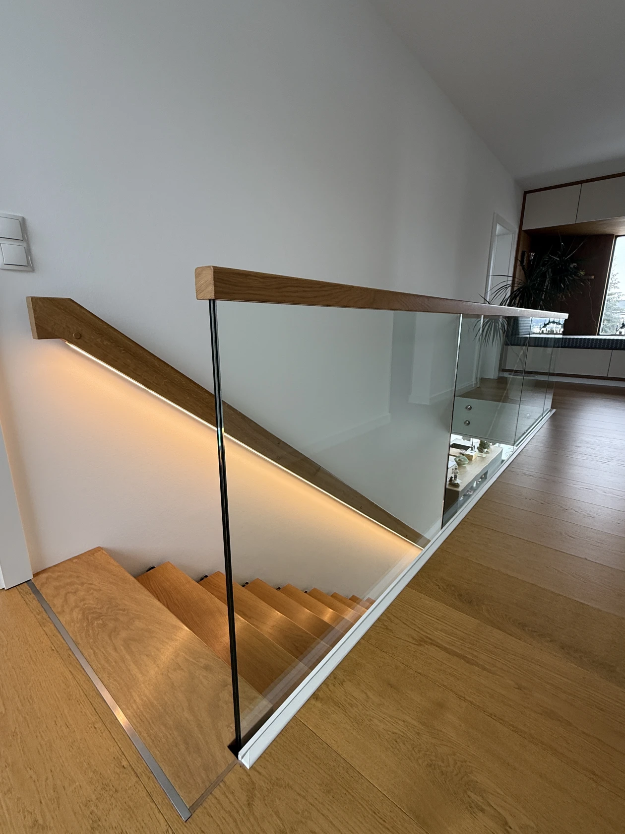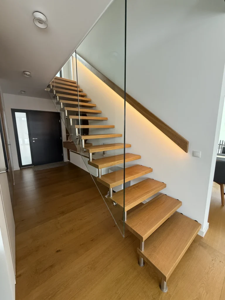 Schwebende Leichtigkeit – Glasgehängte Designtreppenlösung mit Eichenstufen