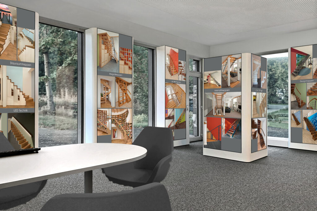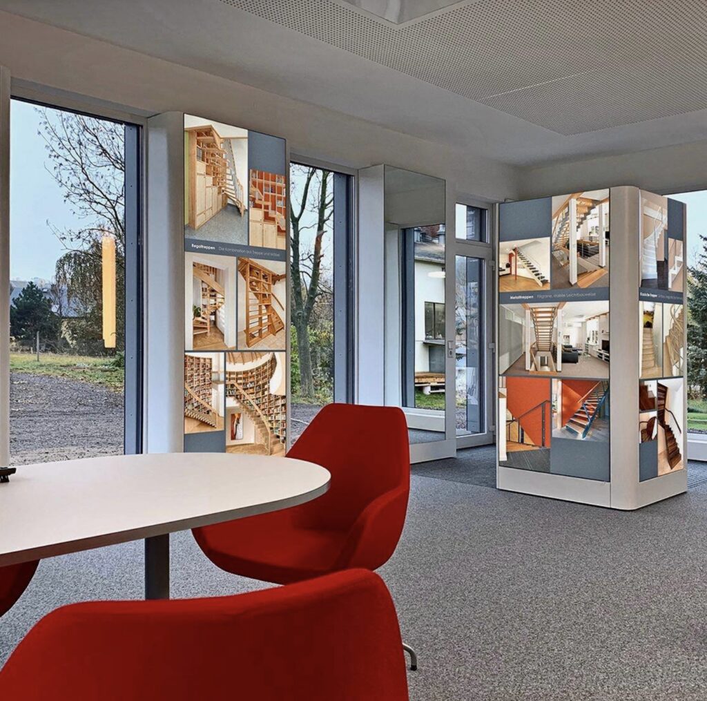 Mitten ins Grüne haben wir unser neues Treppenstudio gebaut. Ein Kreativraum, dessen Ambiente bestens geeignet ist, Ihre künftige Treppe zu planen.